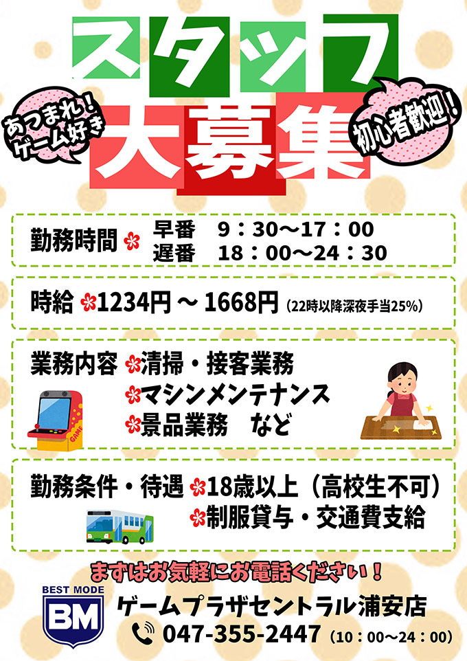 ホーム > ゲームプラザセントラル浦安店 > スタッフ募集